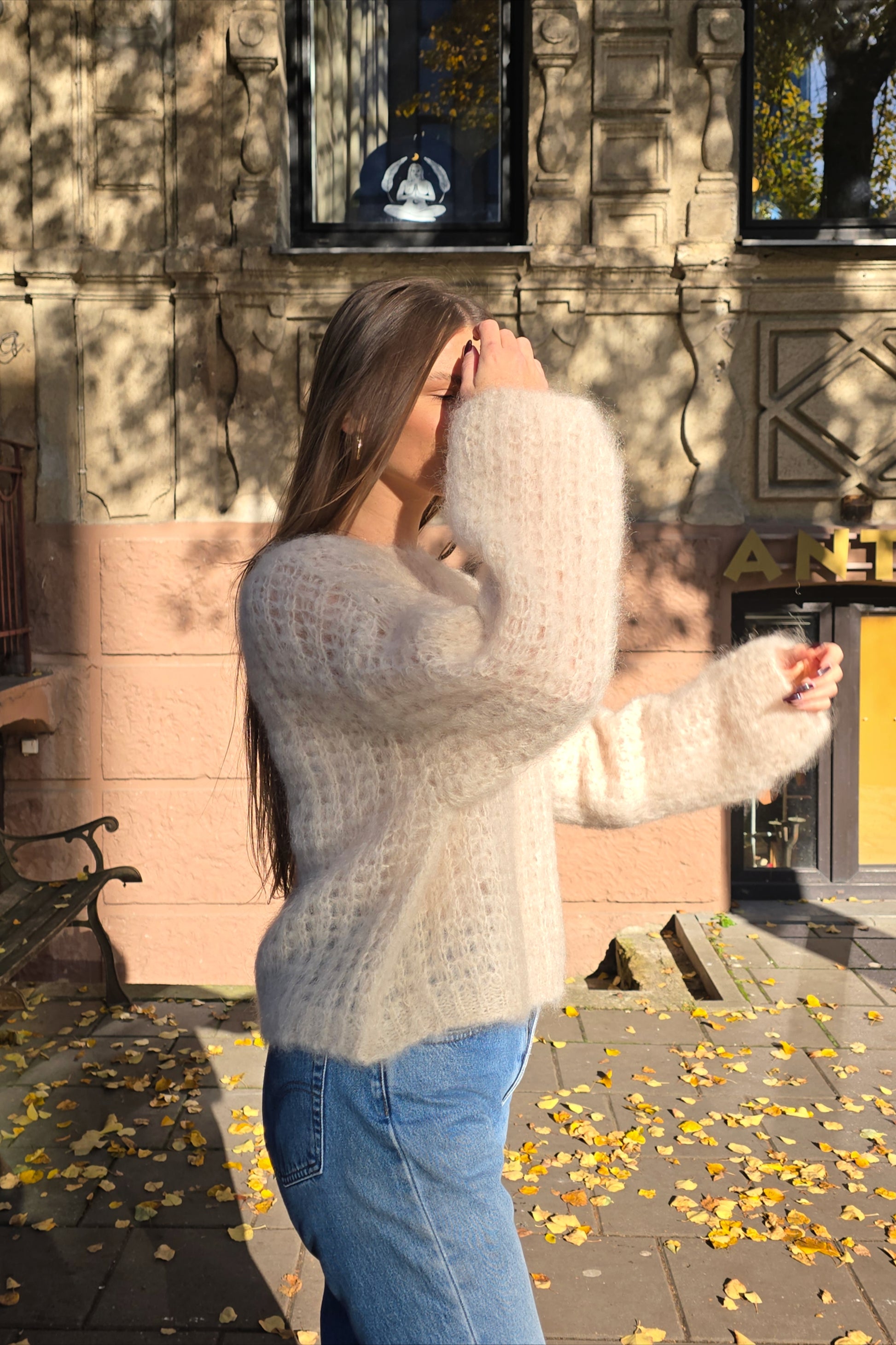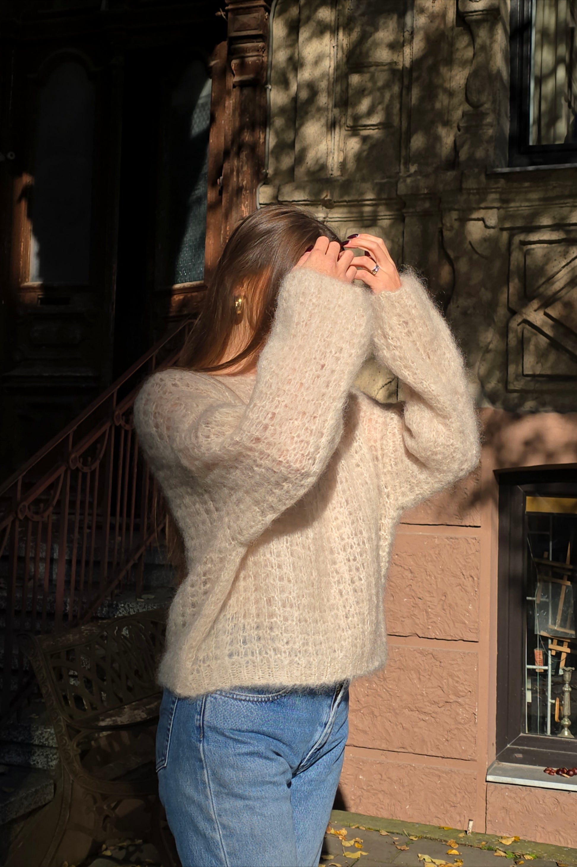 Lengvas kaip oras, švelnus kaip sapnas — šis moherinis megztinis apgaubia kūną šiluma ir šviesa.